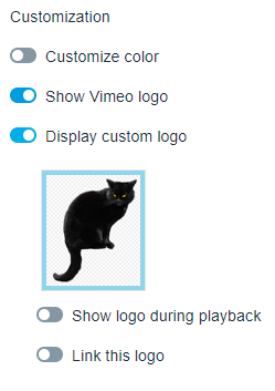 - Wenn dein Logo ausgewählt ist, kannst du auch wählen, ob das Logo während der Wiedergabe angezeigt und ob es mit einer anderen URL verknüpft werden soll, die du unterhalb der Einstellung eingeben kannst.