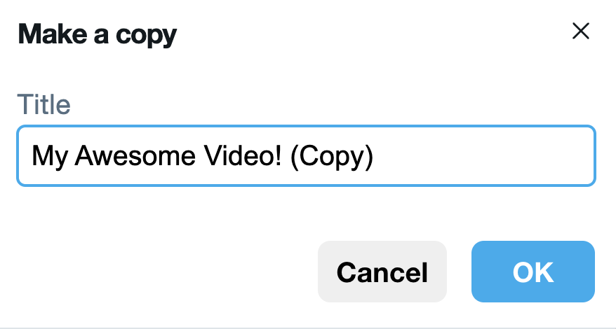 Es erscheint ein Popup, in dem Sie den Namen des duplizierten Videos ändern können.