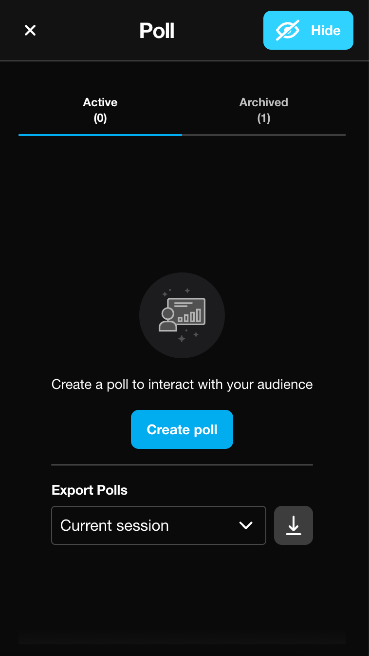 Du kannst die Zuschauerbindung während deiner virtuellen Events erhöhen, indem du Live-Umfragen direkt in deinem Veranstaltungsraum hostest.