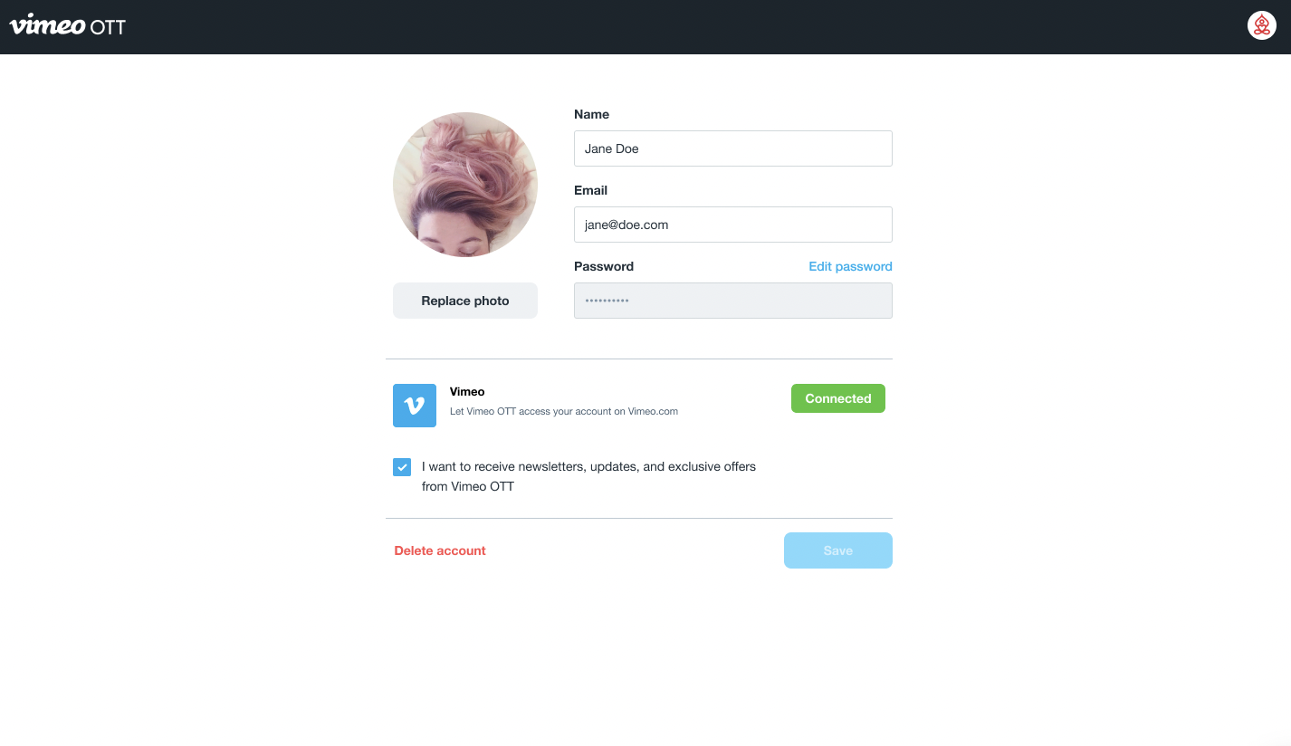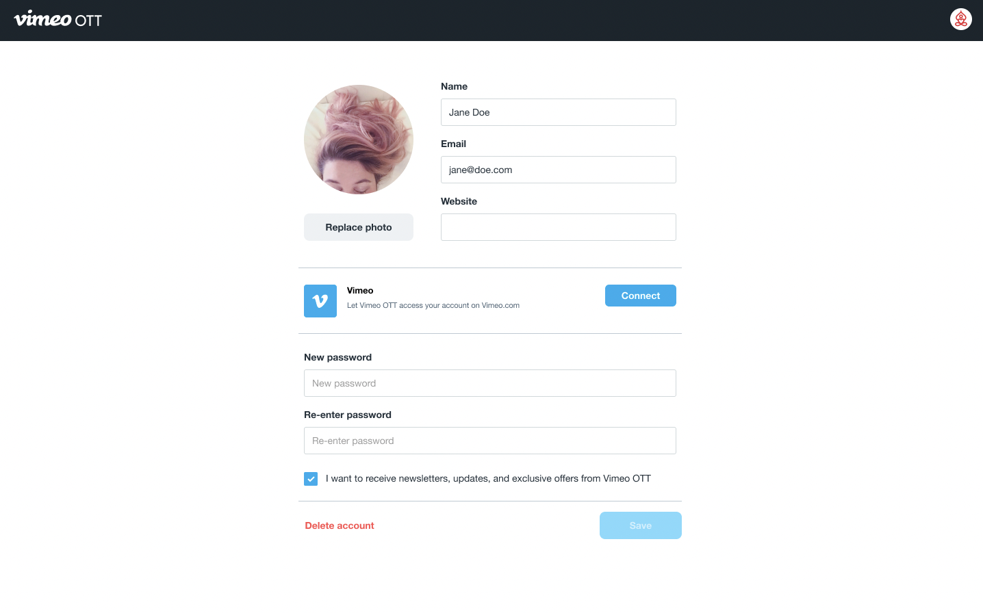 Note: You can connect your Vimeo and OTT accounts even if they have different email addresses.