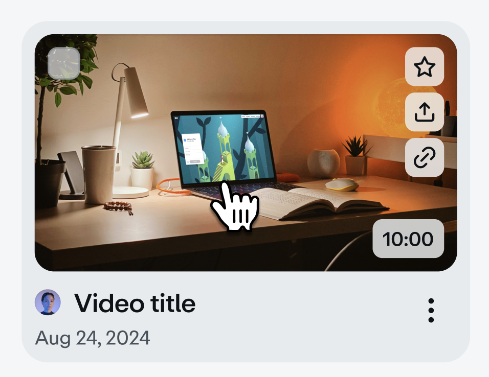 - When in list mode, additional options for performing actions related to the video will become visible when you hover over it. In grid mode, they’ll appear in the top right corner of the video player.