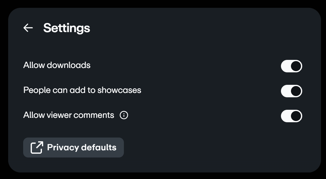 - In the Viewer permissions section, toggle the Downloads switch on or off.