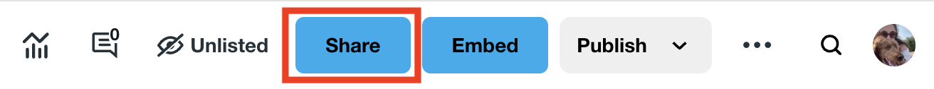 - A new modal will appear on the right side with options for sharing, embedding, and changing the privacy settings for your video.