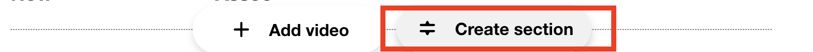 - To create a section, hover your cursor over the space between your video rows and select Create section.