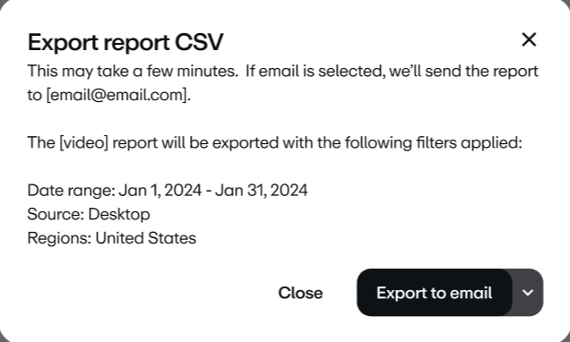 💡Tip: If you have an account with lots of videos/views, it is advisable to have the report emailed to your account.