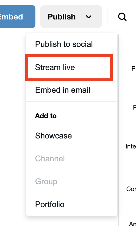 Dans le coin supérieur droit, sélectionnez l'option Publier, puis sélectionnez Diffuser en direct.