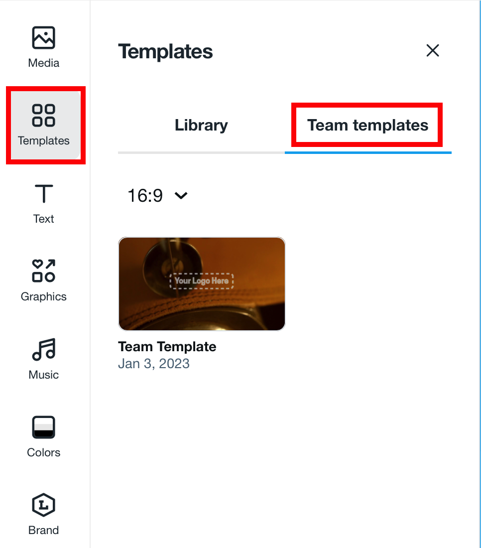 - テンプレートをの編集:チームテンプレートをエディターのタイムラインに追加して編集します。