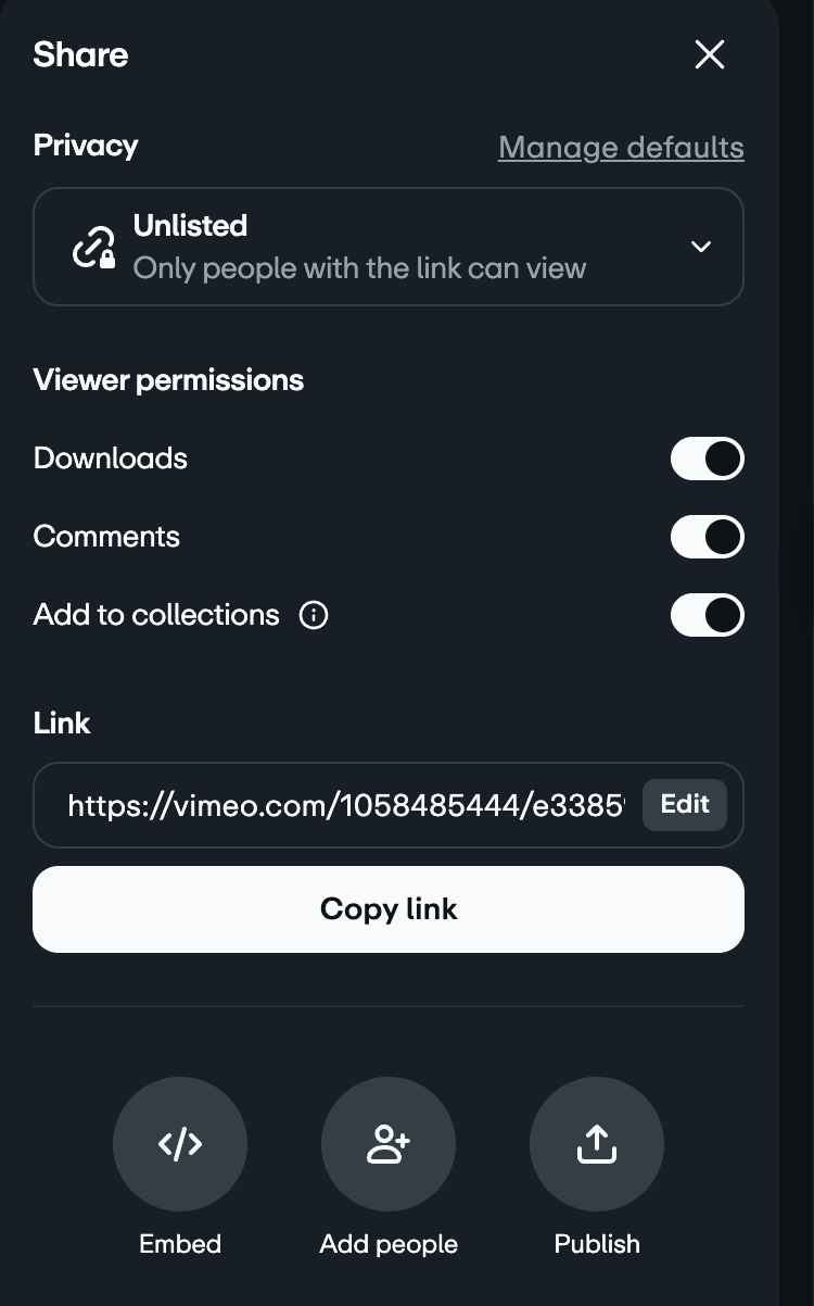 Vimeoでは、誰がどのように動画にアクセスできるかを制御するためのさまざまな方法を提供しています。この記事では、動画のプライバシー設定を変更する方法と、埋め込みできる場所を制御する方法について説明します。詳細については、「動画のプライバシー設定の概要」をご覧ください。