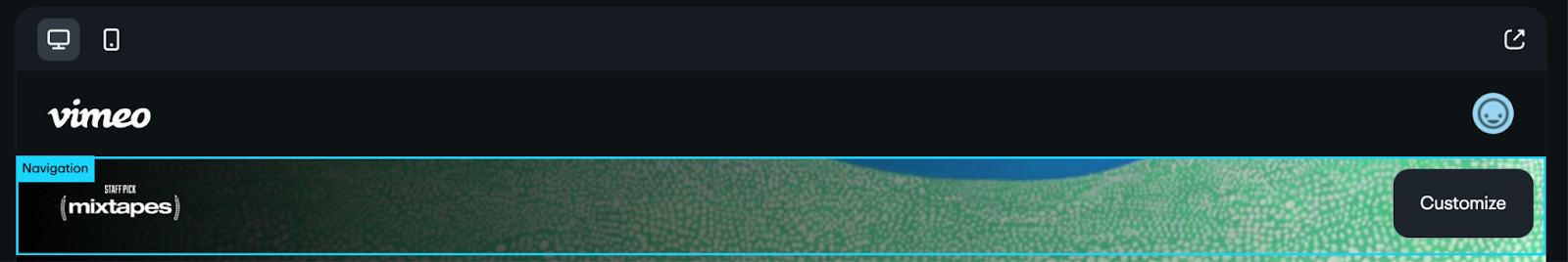 - モバイルアイコンを選択して、ショーケース設定ページ内にモバイルビューを表示します。