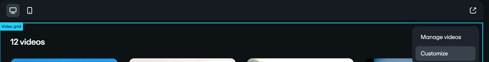 - そこから、動画グリッドをカスタマイズしたり、ショーケース内の動画を管理したりできます。