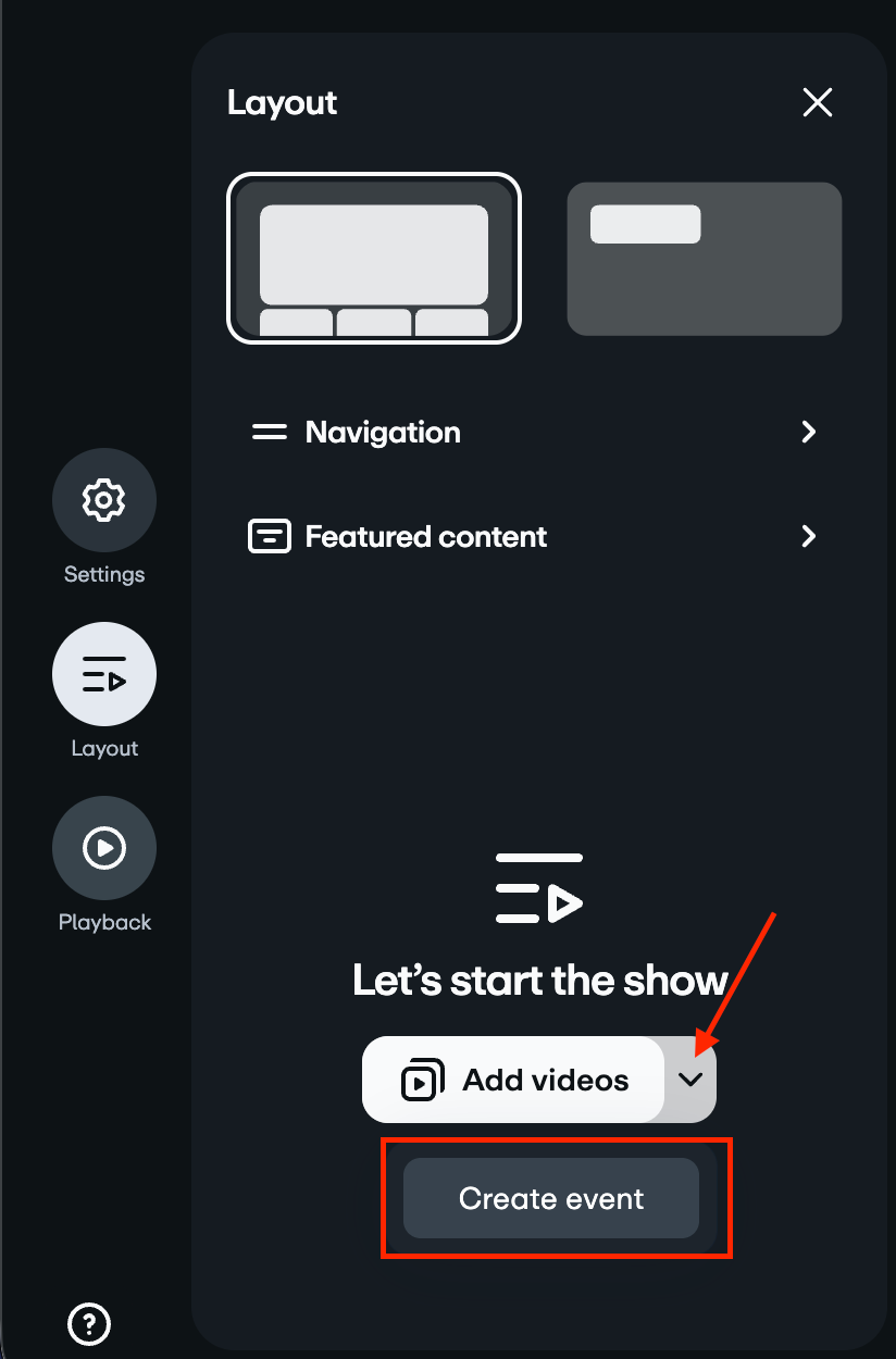 ショーケースごとに作成できるイベントは1つだけです。詳細はショーケースのライブイベントについてをご覧ください。 ショーケースをカスタマイズして、ライブ視聴者により洗練された体験を提供できます。