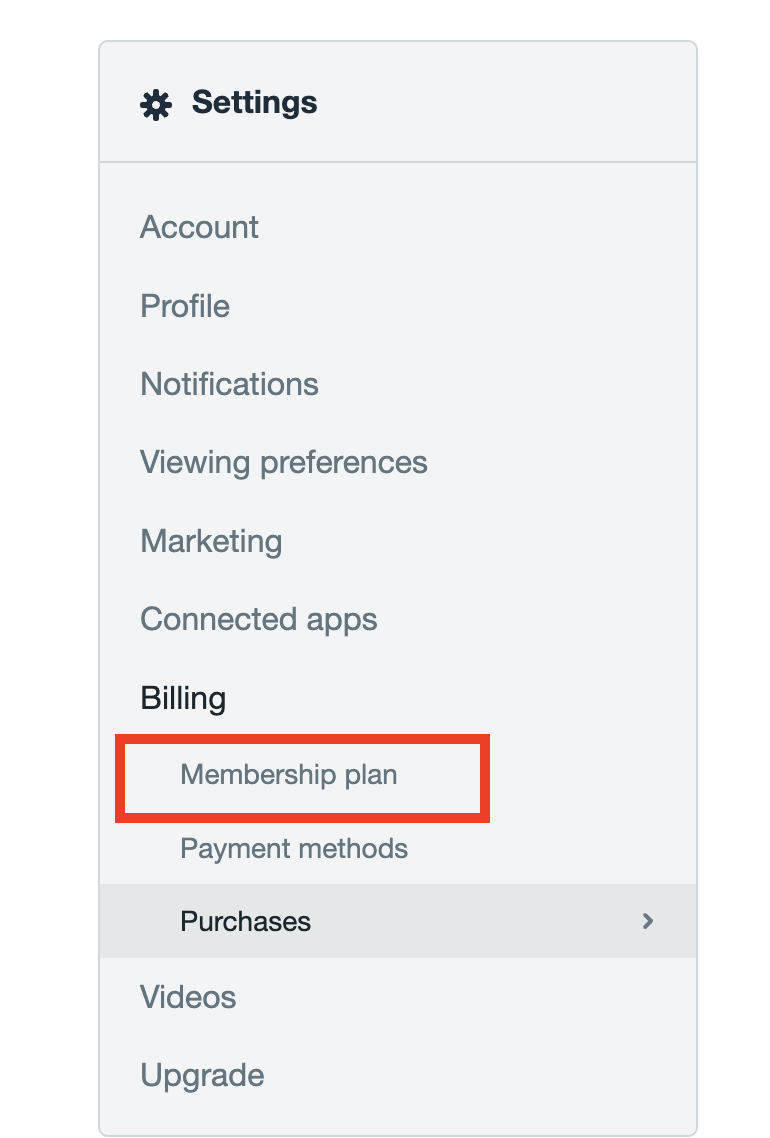 - Apple App Store 또는 Google Play 계정을 사용하여 모바일 앱을 통해 Vimeo 구독을 구매한 경우, vimeo.com의 청구 설정에 취소 옵션이 표시되지 않습니다. 해당 모바일 플랫폼을 통해 구독을 관리해야 합니다.