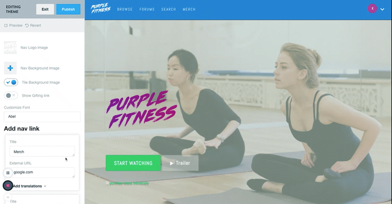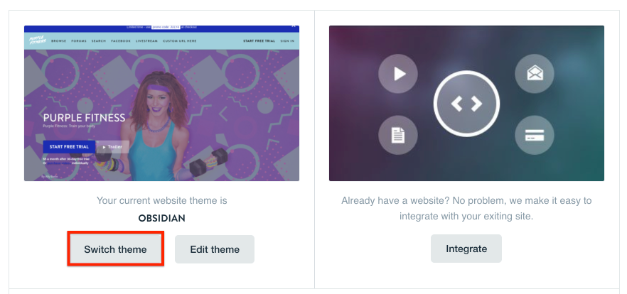 - 테마를 선택하고 편집하려면 먼저 비디오가 포함된 구독 상품이 있어야 하며, 지급이 연결되어야 합니다 .