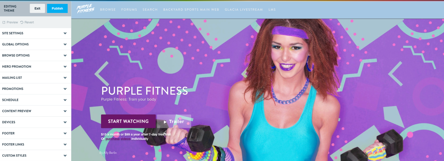 Vimeo OTT는 현재 몇 가지 사이트 테마를 제공하며, 모두 사용자 지정이 가능합니다.