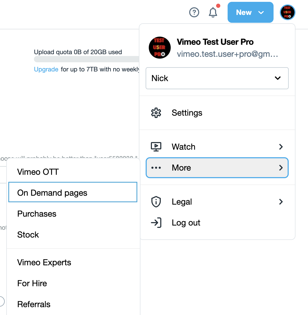 - Vimeo에 로그인한 후 오른쪽 상단 모서리에 있는 프로필 아이콘을 선택합니다.