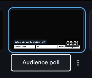 Terços inferiores de cena, enquetes e gráficos de perguntas e respostas não podem estar todos na mesma cena simultaneamente. Como todos eles usam a mesma área do player, apenas um pode ser aplicado a uma cena por vez.