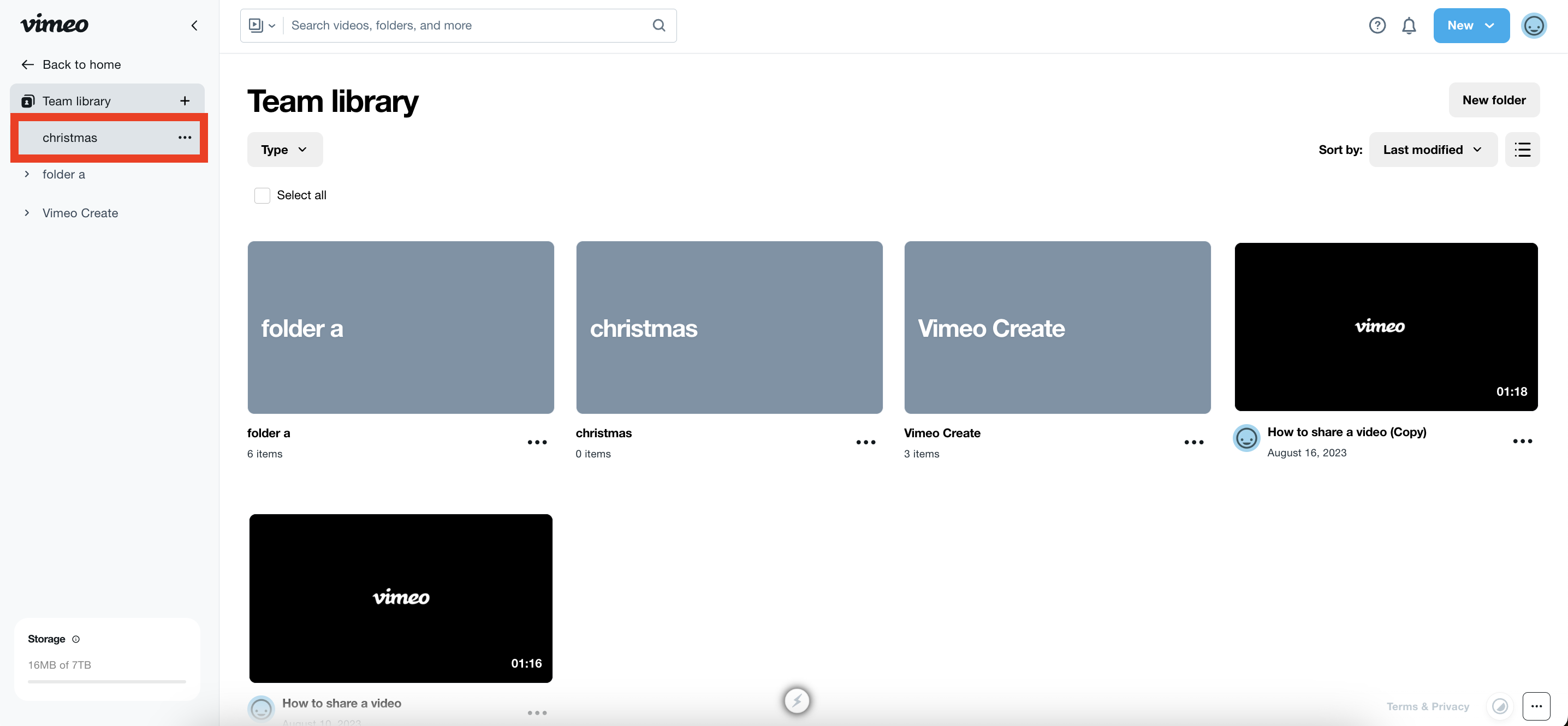 Você também pode criar um novo vídeo diretamente da pasta para salve-o nessa pasta. Saiba mais em How to make a new video on the Vimeo website.