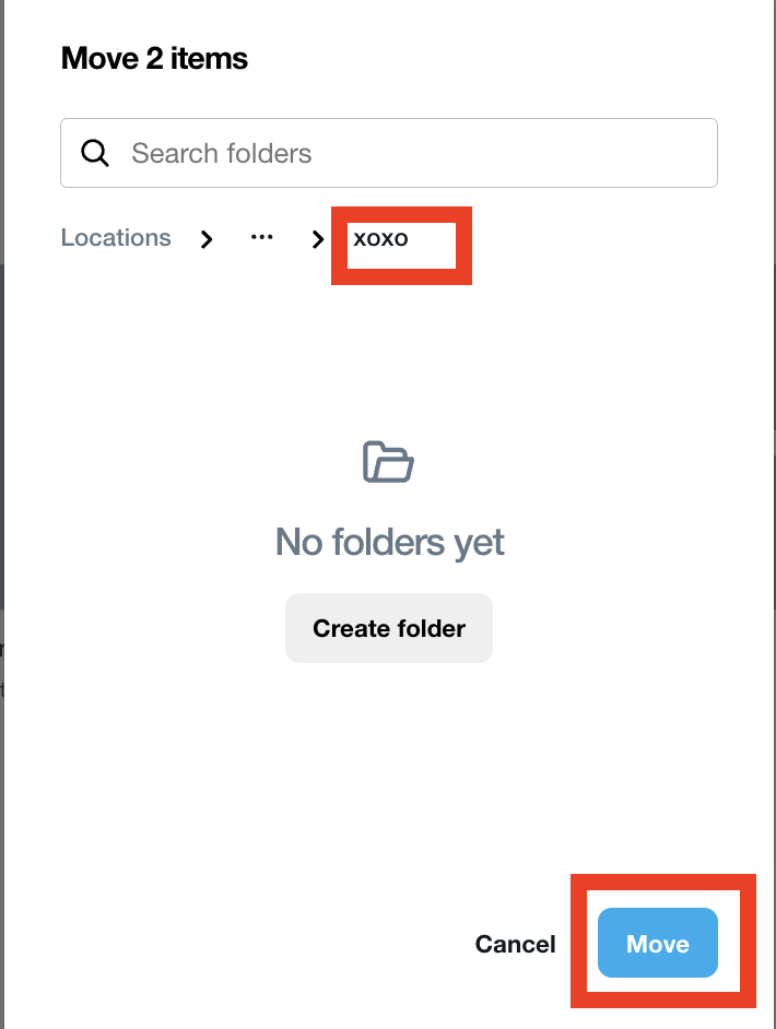 Escolha a pasta de destino dos seus vídeos e selecione Mover.